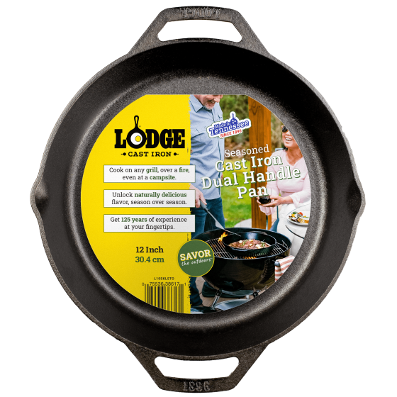 The Lodge Cast Iron 12 Inch Seasoned Dual Handle Pan is a mealtime legend that will be your must have pan for years to come. Made with just iron and oil, the cast iron pan features a helpful assist handle for lifting or hanging. The pan’s naturally nonstick surface provides excellent heat retention and distribution for consistent cooking at any temperature. Perfect for cooking on the grill, over a campfire, in the oven, or on any stove—including glass top stoves and induction. Use it to sauté, sear, bake, broil, braise, fry, or grill—this skillet loves to multitask. Lodge cast iron is built to last for generations, so you can serve memories at every meal, year after year. The Lodge cast iron dual handle pan is seasoned, ready to use, and easy to care for. Since 1896, Lodge Cast Iron has been making heirloom quality skillets, pans, dutch ovens, bakeware, and grilling gear, bringing professional chefs, home cooks, and outdoors folk everything they need to make incredible meals. Our cast iron is made in Tennessee, and we're proud to be a family owned company with a strong commitment to quality, values, and integrity. As the original cast iron manufacturer, we proudly set the standard in cookware that can go anywhere and do anything.