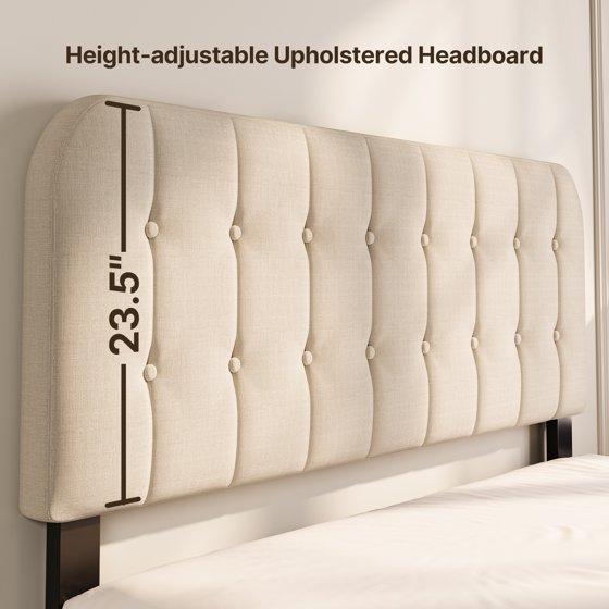 Bed Frame, Lofka Queen Size Platform Bed Frame with Adjustable Headboard and Middle Support Leg, Sturdy and Noise-Free, 850lbs, Beige