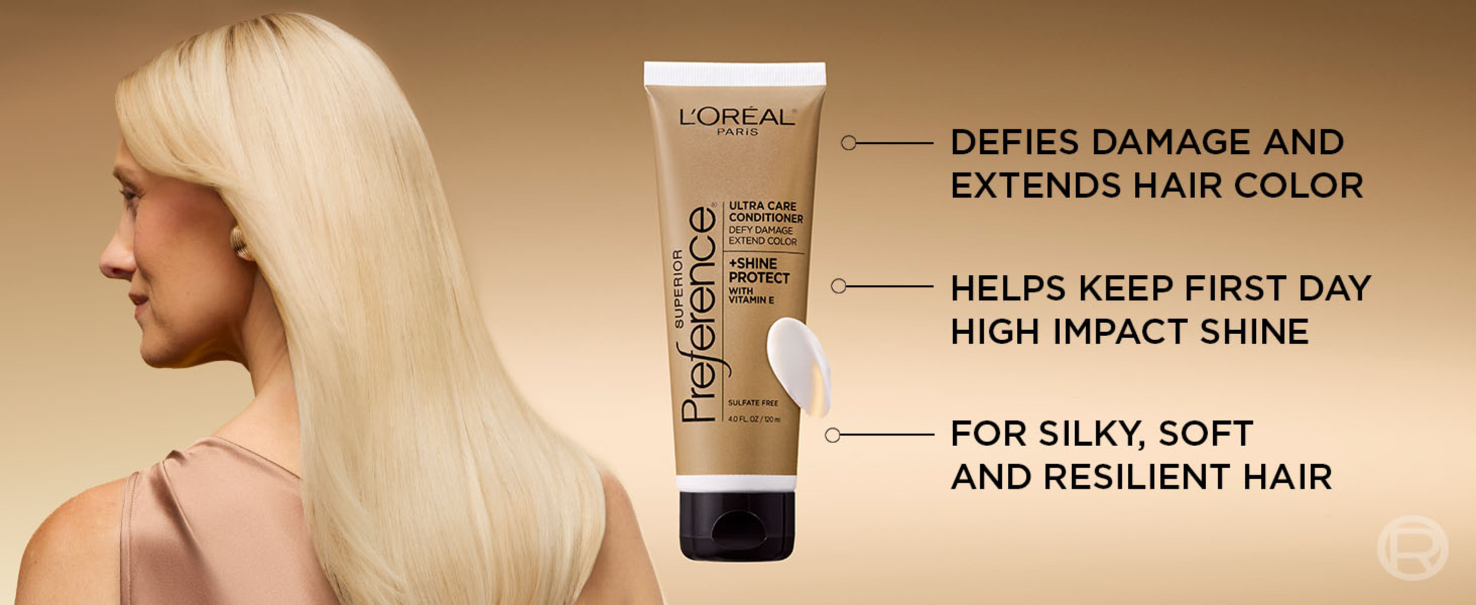 - L'Oréal Paris Preference Shine Protect Ultra Care Conditioner protects hair shine, extends hair color, and defies damage for all color treated hair.
