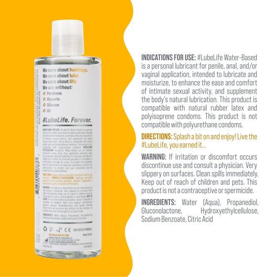 - SILKY SMOOTH: #LubeLife Water-Based Lubricant is the perfect dressing for your salad. It is a personal lubricant for the adventurous and the thrill-seeking. This water-based lubricant complements the body’s natural lubrication and enhances the pleasures of intimacy. Long-lasting, non-sticky, and smooth texture allows for a fantastic experience every time for Men, Women and Couples.