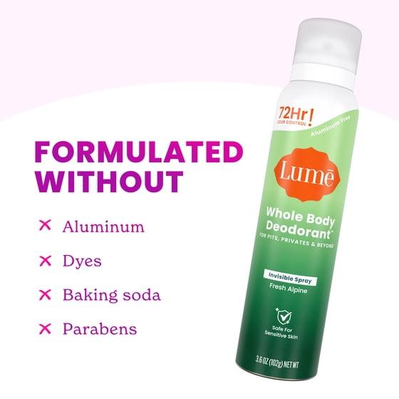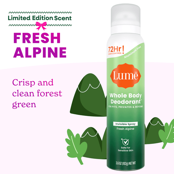 Lume Whole Body Women’s Deodorant - Invisible Spray - Aluminum Free - Limited Edition Holiday Fresh Alpine Scent - 3.6 oz