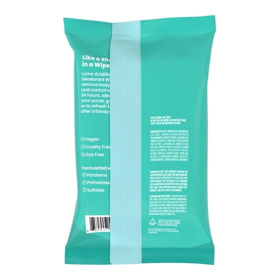 Lume Women’s Acidified Deodorant Wipes - Cool Cucumber - Flushable - 45 Count