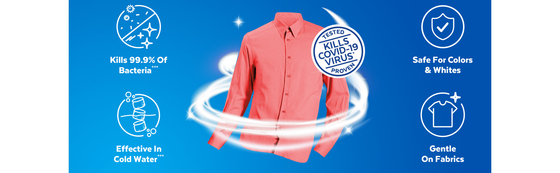 - ELIMINATES 99.9% OF BACTERIA AND VIRUSES*: Including the Covid-19 virus.** *Use as directed. **Eliminates SARS-COV-2 during pre-soak conditions in 5 minutes. EPA Reg No.777-128.