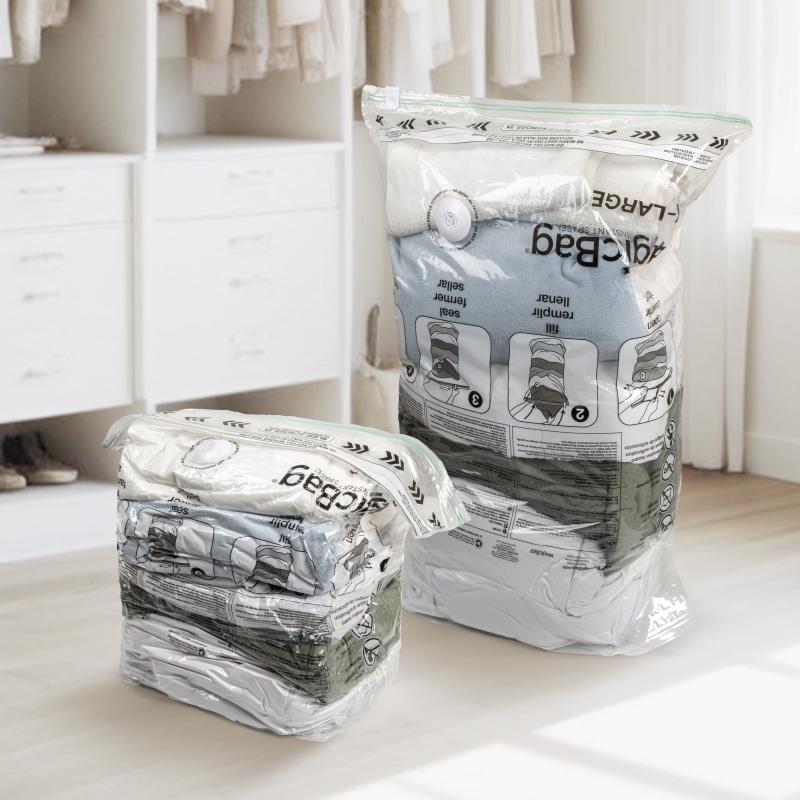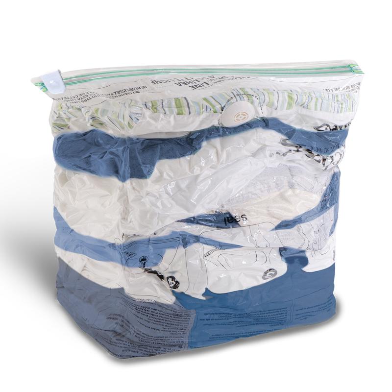 Pack items in bag and seal. Zip & Seal. Vacuum directly on valve. Store!