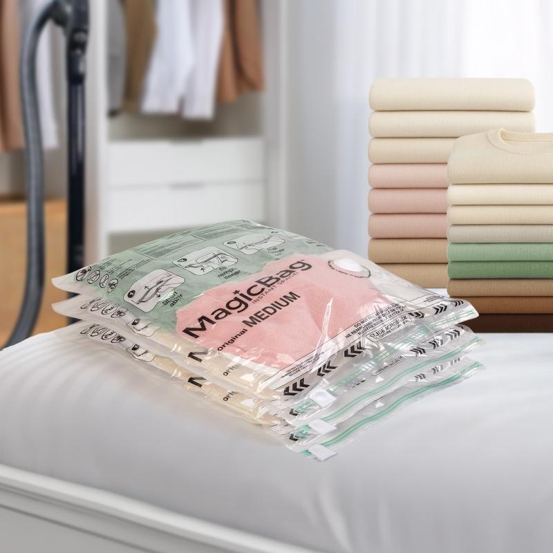 - Free Up More Space - MagicBag Space Saver bags create 3X more space in your closet, under your bed, or in storage bins by compressing your linens