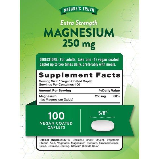 - EXTRA STRENGTH FORMULA: Each caplet delivers 250 mg of Magnesium as Magnesium Oxide