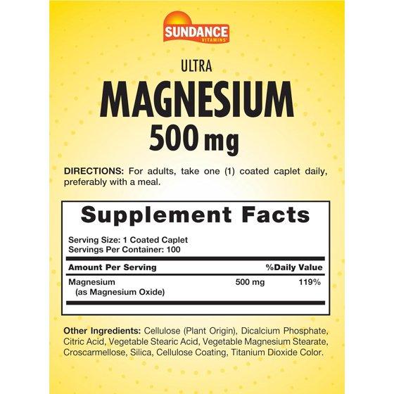 Getting the daily amount of Magnesium just got sunnier with Sundance Vitamins Ultra Magnesium coated caplets. Taking a Magnesium supplement may be beneficial for adult women and men alike. Each coated caplet supplies 500 mg of Magnesium as Magnesium Oxide and one per day can help you satisfy your daily requirement of this essential mineral.