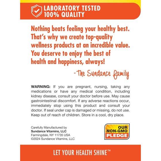 Sundance Vitamins believes in supplying only the best ingredients. These caplets are coated for ease of swallowing, vegetarian friendly, and non-GMO. They are also free from gluten, wheat, yeast, milk, lactose, soy, and artificial sweetener.