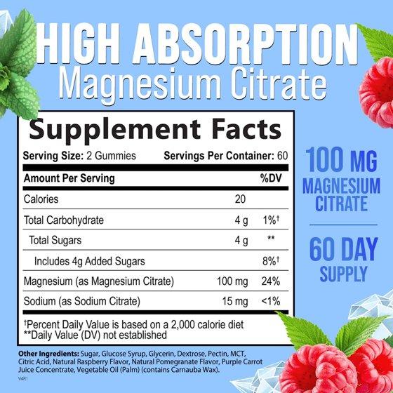 - MAGNESIUM GUMMIES WITH HIGH-ABSORPTION FORMULA: Delicious magnesium gummies made with premium magnesium citrate gummies for effective daily support; Each magnesium citrate gummy is vegan, Non-GMO, and easy to enjoy as a tasty magnesium gummy alternative to capsules or powders
