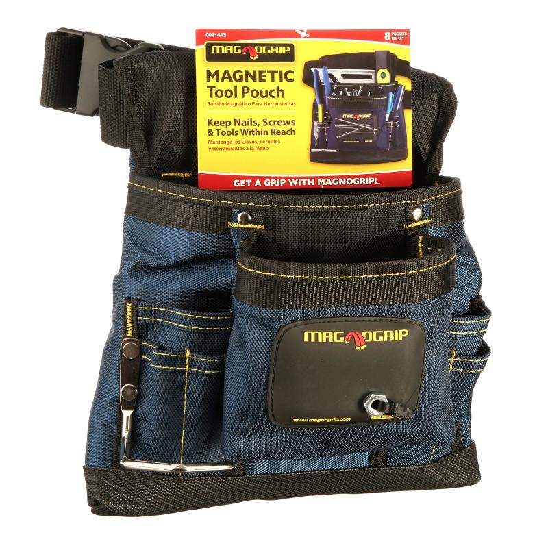 Keep your tools organized and close at hand with this MagnoGrip Tool Pouch. It is ideal to use when working on a project and you don't want to scramble for items you need. It has a magnetic pocket that is designed to keep things from spilling. This blue magnetic tool pouch also has an exterior magnet that provides quick and easy access to what you need to get the job done. It is durable and made with 100 percent ballistic polyester. It includes several pockets and is a good choice for small to medium repair projects.