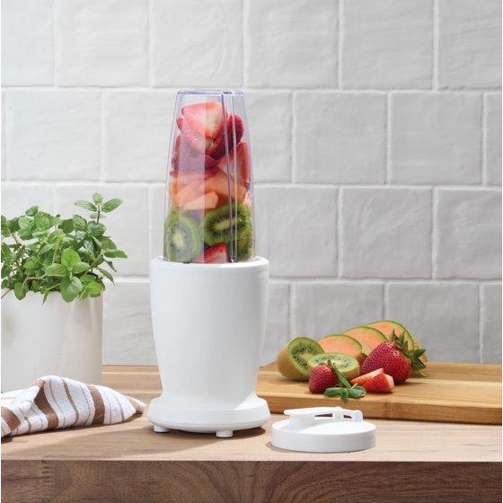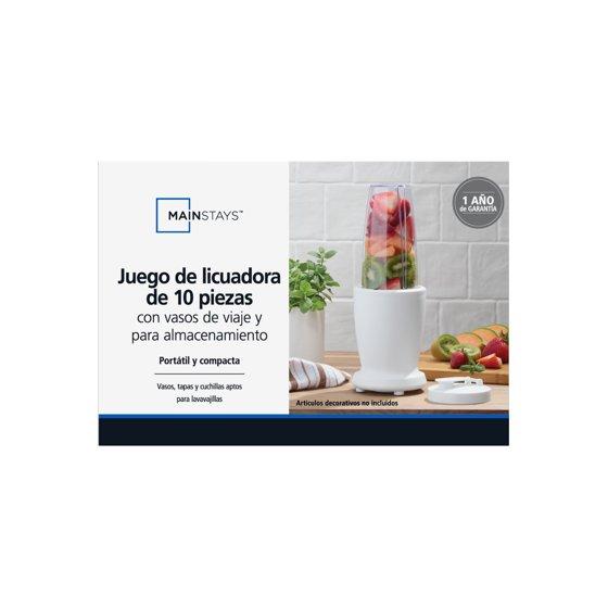 Mainstays 10-Piece Blender Set, Arctic White, 300W, with 3 Jars (10oz, 16oz, 18oz), 2 Drinking Lids, Stainless Steel Blade