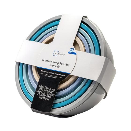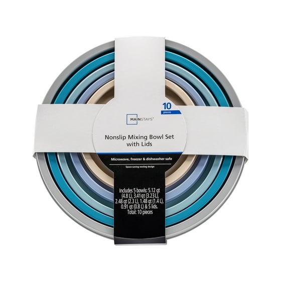 Mainstays 10-Piece Nonslip Nesting Plastic Mixing Bowl Set with Assorted Lids