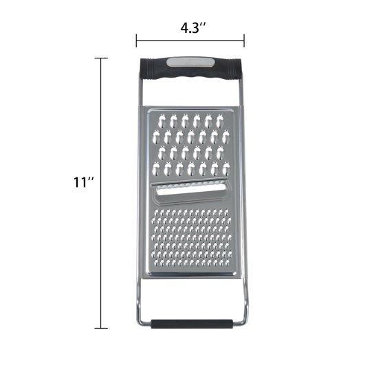- Compact size of 11"x4.4"x0.8" makes this grater ideal for efficient storage while still offering three full-sized grating surfaces.