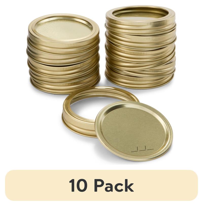 - Includes 12 metal lids and 12 rings with gold-colored finishes