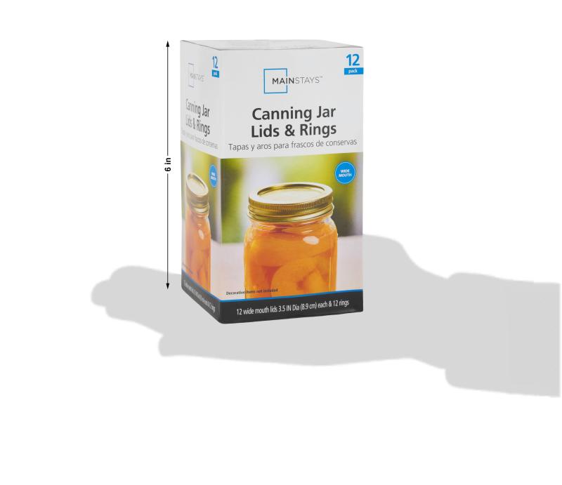 Keep your jams, salsas, pickles, and peppers fresh longer with a set of Mainstays Wide-Mouth Canning Lids with Rings (12 Count) in your kitchen pantry. This classically designed set of food canning must-haves includes 12 metal lids and 12 rings with gold-colored finishes. They’re ideal for sealing jars for canning fruits, fruit butters, veggies, spreads, sauces, and more. Wide-mouth construction provides ease of use when filling and emptying jars, and airtight seals ensure extra freshness. The lids and rings are hand-wash only. They’re great for prepping for special occasions or for everyday use. The set of Mainstays Wide-Mouth Canning Lids with Rings (12 Count) is a convenient, essential solution for canning and preserving food in simple, classic style that complements any kitchen decor.