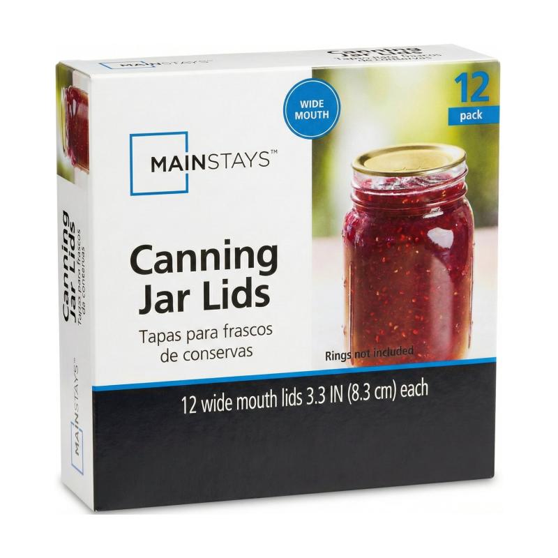 Mainstays 12-Pack Canning Jar Lids - Wide Mouth, One-Piece Replacement Mason Jar Lids for Canning and Preserving, Fits All Brands Wide Mouth Mason Jars