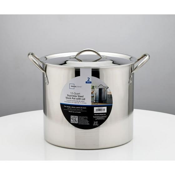 - Mainstays 12 Quart capacity (11.4 L) is the perfect size for pasta sauce, soup, and more. Lid and Stockpot made from ultra durable Stainless Steel to keep your cookware lasting longer