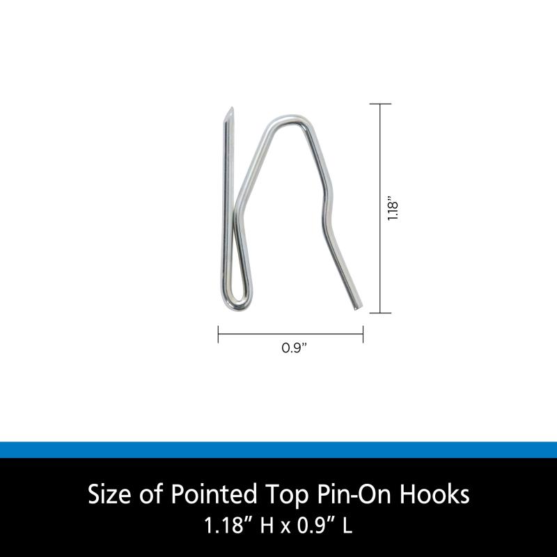 Pair this set of Mainstays Pointed Top Pin-On Hooks with a Traverse Curtain Rod and the curtain or drapery of your choice for a complete window treatment solution. Pointed Top Pin-On Hooks are perfect for use with pinch pleat curtains.