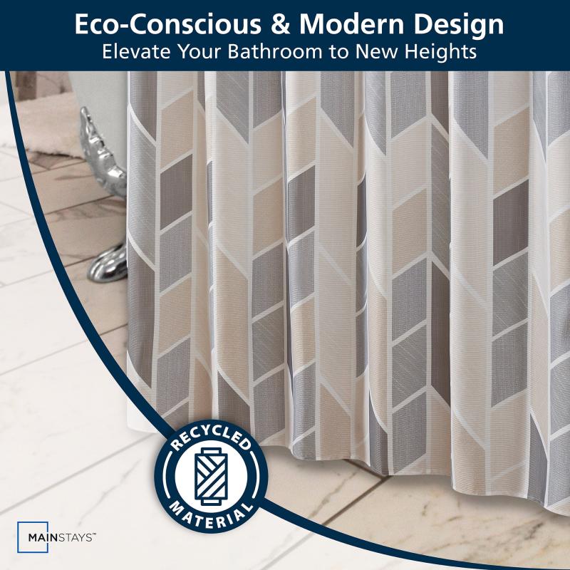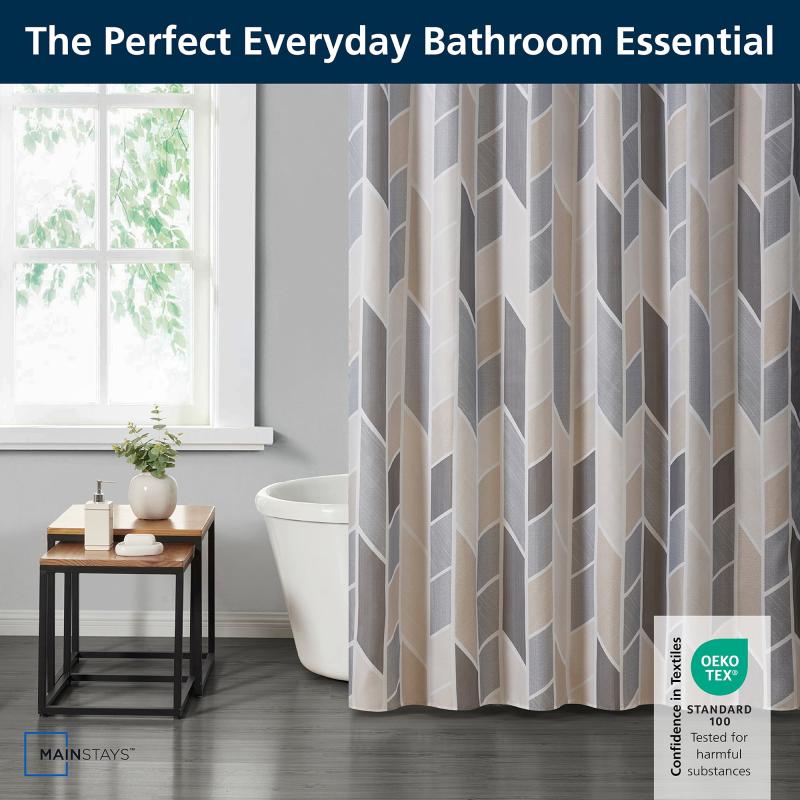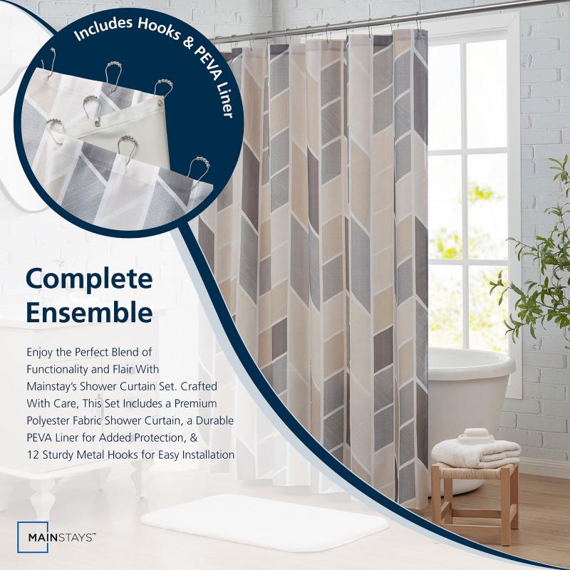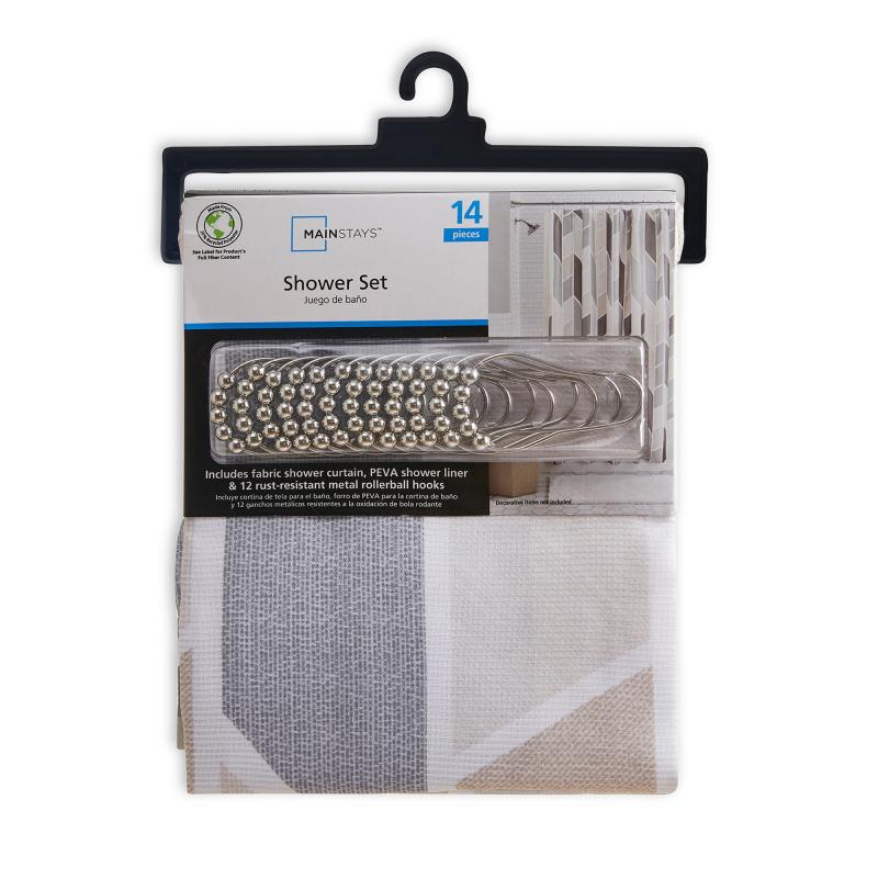 - Mainstays 14 Piece Fabric Shower Curtain Set, PEVA Liner & Hooks, Natural Geometric 72" x 72"