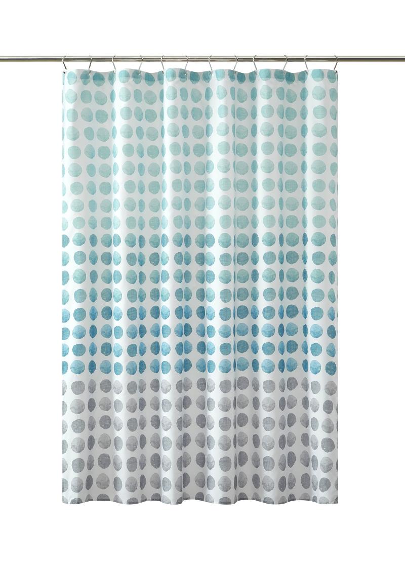 Mainstays 15-Piece Blue Dots Bathroom Set – Shower Curtain, Bath Rugs & Hooks, Modern Washable Design