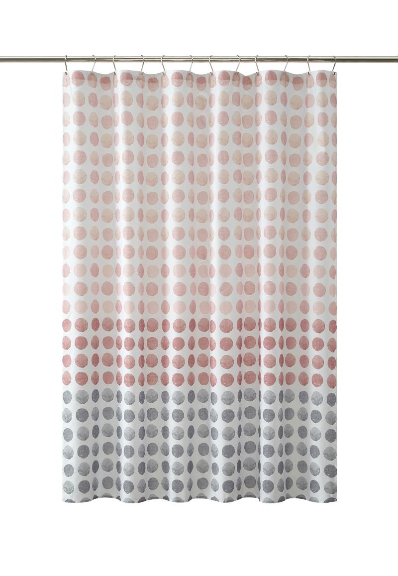 Mainstays 15-Piece Blush Dots Bathroom Set – Shower Curtain, Bath Rugs & Hooks, Spa-Inspired Washable Design