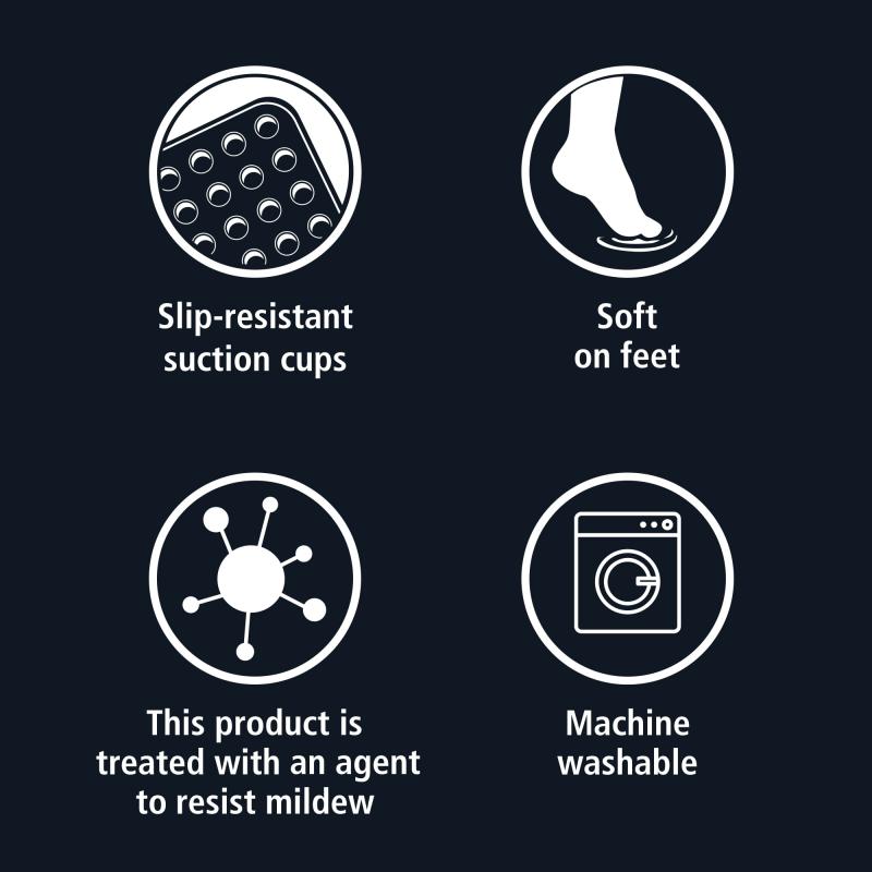 Mainstays 15" x 27" Mildew Resistant Soft on Feet Ring Textured Bathtub Mat with Suction Cups, Gray