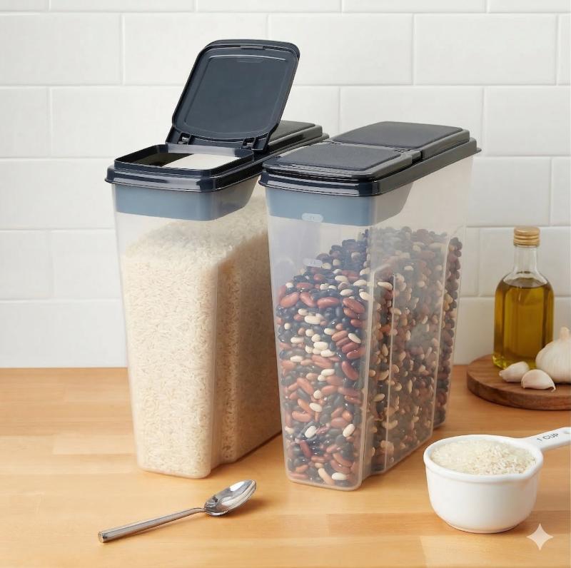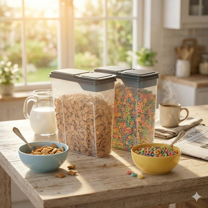 Mainstays 2-Pack Plastic Cereal Keeper Storage Containers, Kitchen Pantry Organizer Canisters for Cereal and Dry Food Storage, 24 Cup Capacity, Dark Gray Lid