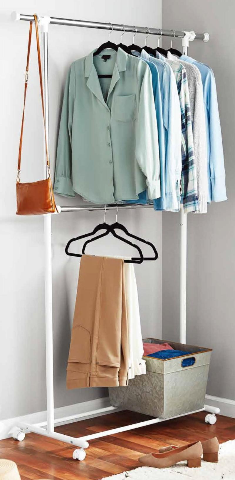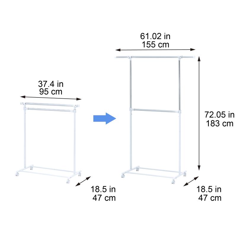 - 2 tiers of hanging rods are ideal for business shirts, blouses, skirts, slacks, dresses, jackets and more