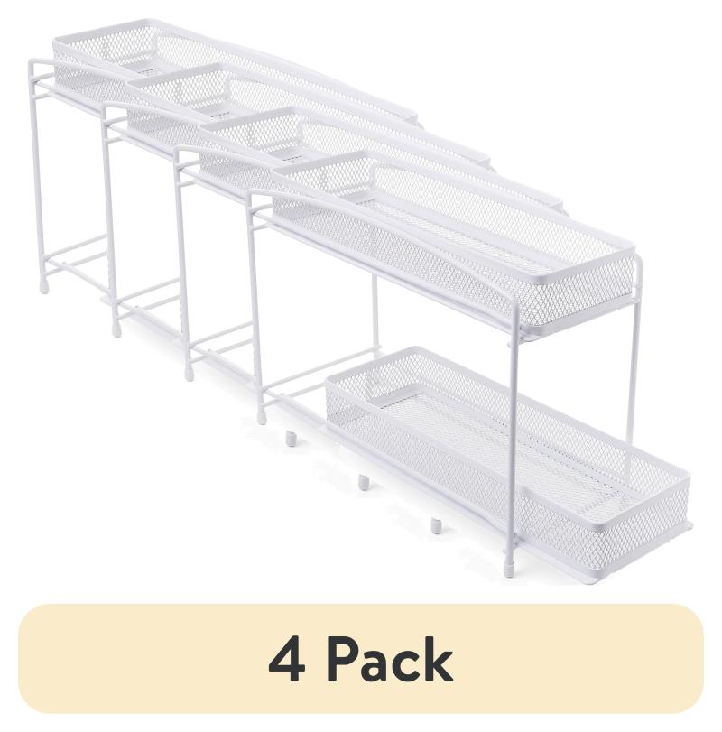(4 pack) Mainstays 2-Tier Sliding Spice Organizer Rack, Pull-Out Cabinet and Pantry Spice Storage Rack for Kitchen Organization, 4.5" x 11", White