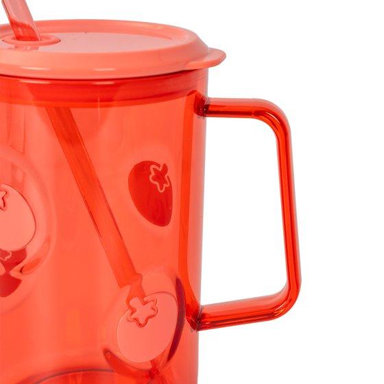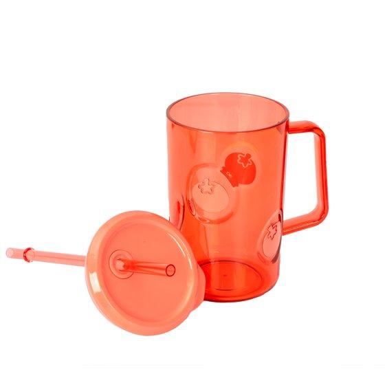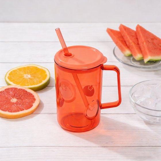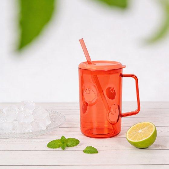 Mainstays 20oz Plastic Mug with Lid, Straw & Handle, Orange, Tomato
