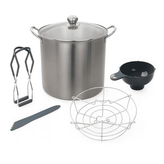 - Mainstays 5-Piece Complete Water Bath Canning Kit is the perfect solution for beginners starting out or experienced canners who want reliable, high-quality preserving supplies for every season