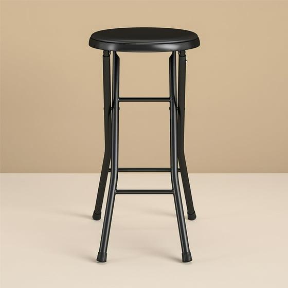 The Mainstays Folding Metal Stool is the most versatile and functional seating your home will see. Designed for multi-purpose use, this stool has a slim, compact build for saving space both when in use and when not in use, has a lightweight build for your convenience in transportation and portability, and folds up with ease for sliding into the closet to keep your space maximized or packing up into the car to take to a family outing. This stool is completed with its comfortable seat padding and rubber feet covers to prevent sliding. Its sleek black color lends itself to blend in seamlessly with a variety of home decor themes, and its modern style gives an elevated look over your usual stool seating. Easy, portable seating for any room or event is found with the Mainstays Folding Metal Stool.