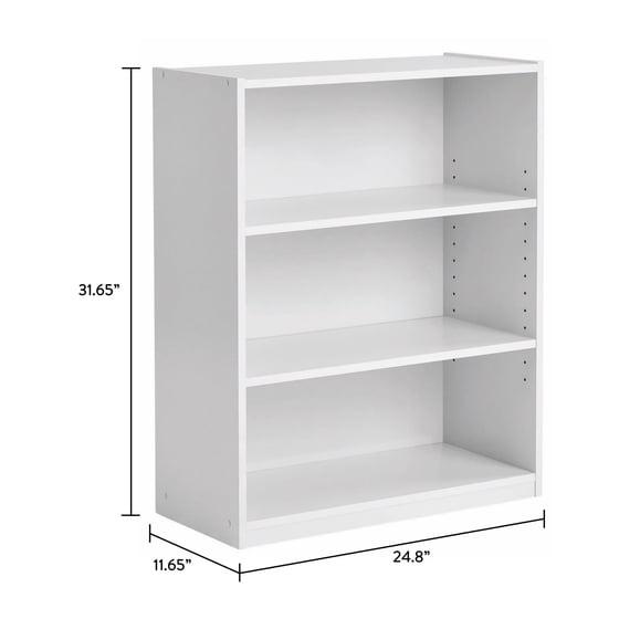 Add the sleek Mainstays 3-Shelf Bookcase with Adjustable Shelves to any room for a functional and stylish look. This sturdy storage unit has a closed back design with one fixed shelf that holds up to 50 lbs, and two adjustable shelves that support up to 35 lbs each. Quick and easy to assemble, this attractive bookshelf is a useful storage option for any office, living room, family room, den and more. At 31" tall the Mainstays 3-Shelf Bookcase is perfect for small and medium rooms where smart, efficient storage is needed. The adjustable shelves accommodate everything from paperbacks to large folios, perfect for small libraries and collections.