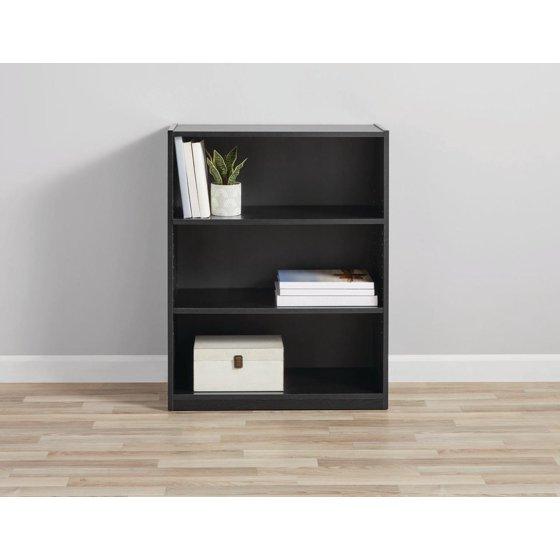 Mainstays 3-Shelf Bookcase with Adjustable Shelves, True Black Oak