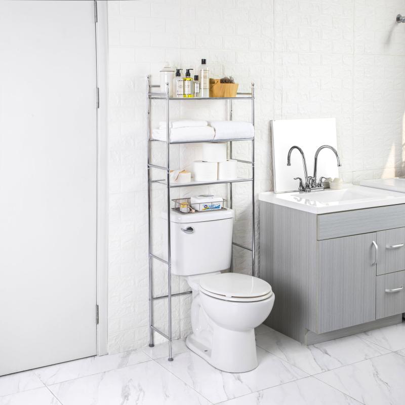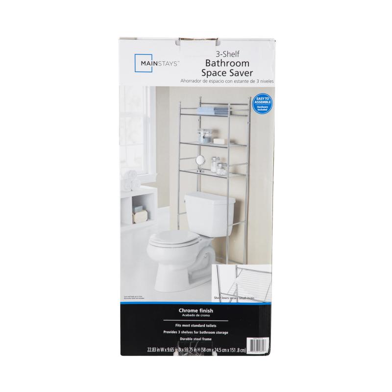 Mainstays 3-Shelf Over-the-Toilet Steel Storage Rack, Chrome Finish