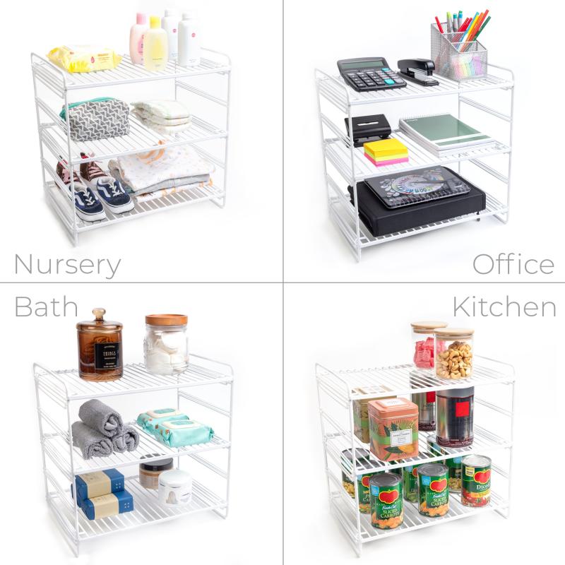 Mainstays 3-Tier Adjustable Shelf Organizer, Kitchen Counter Storage Rack for Pantry and Cabinet Organization, White