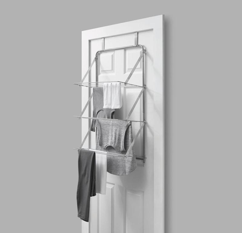 Mainstays 3-Tier Steel Over-the-Door Clothes Drying Rack, Silver