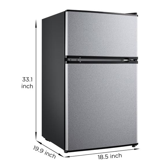 Mainstays 3.2 Cu Ft 2-Door Compact Refrigerator with Freezer, Stainless Steel, Mini Fridge for Dorm, Apartment & Office