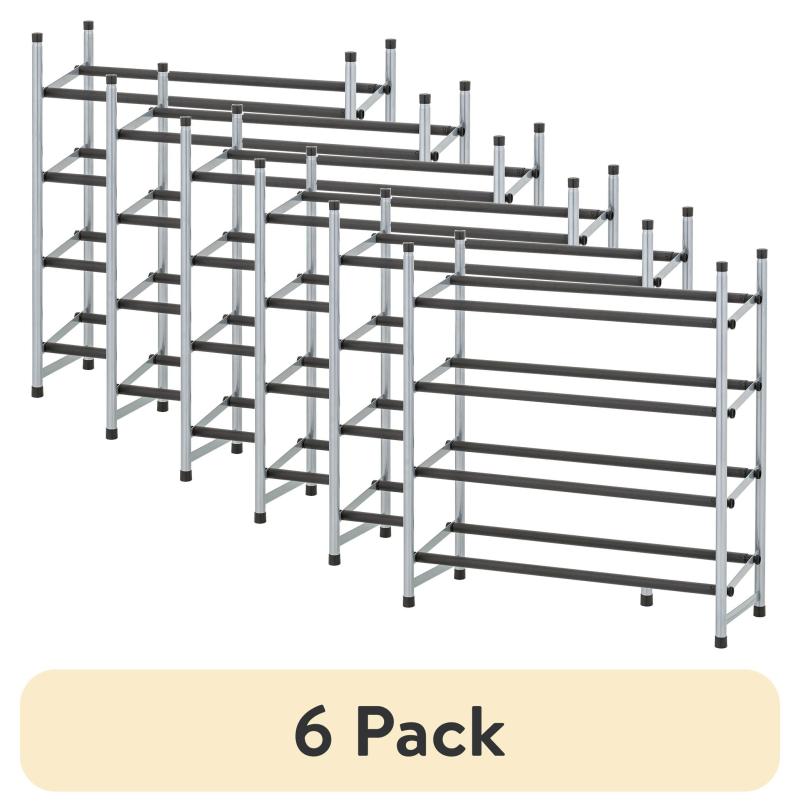 (6 pack) Mainstays 4-Tier Expandable Stackable Closet Storage Shoe Rack Organizer Shelf, Up to 20 Pairs, Metal, Black, Silver