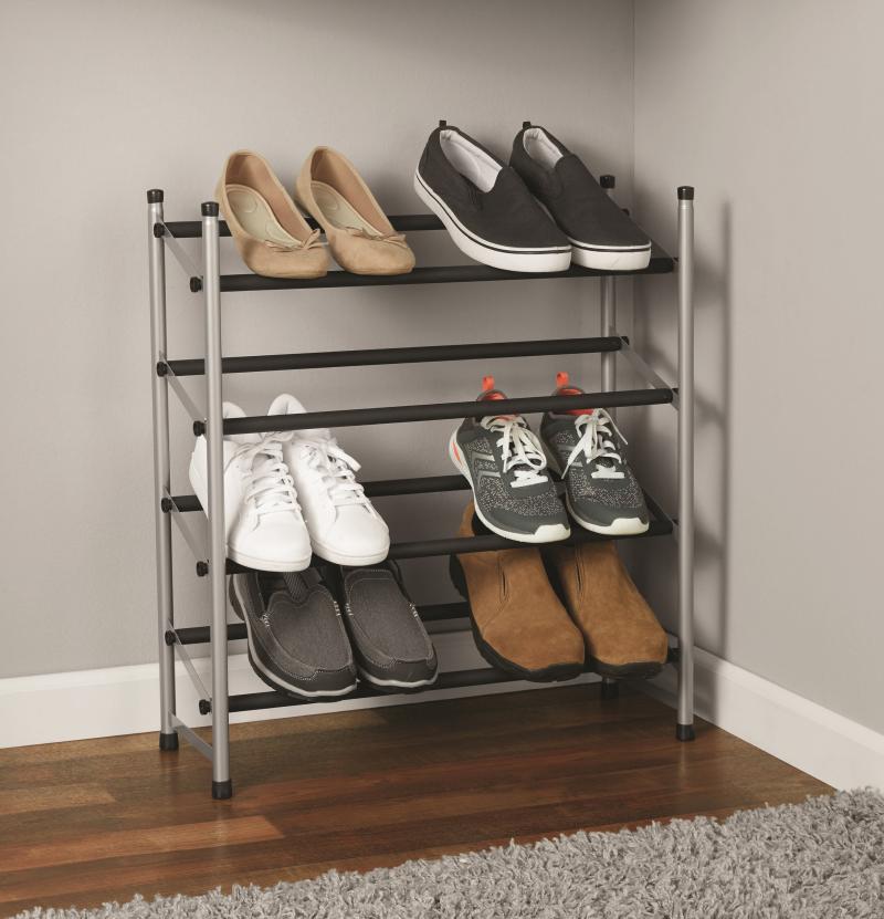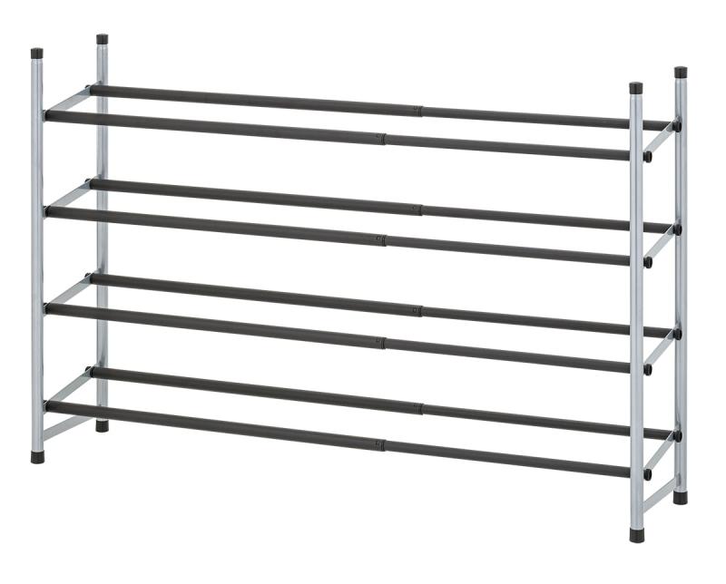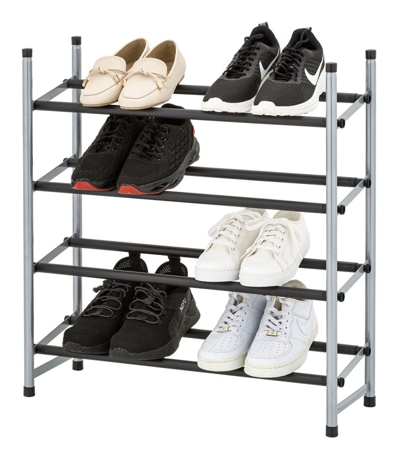 - Mainstays 4-Tier Shoe Rack Black Rod, Steel Powder Coating Silver, up to 20 Pairs