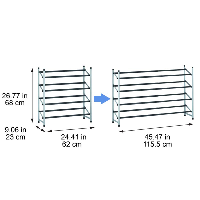 - Shoe Rack measures: 24.41-45.47" W x 9.06" D x 26.77" H (62-115.5W x 23D x 68H cm)