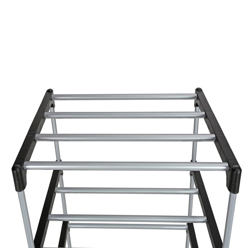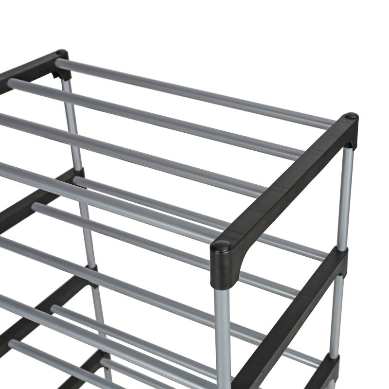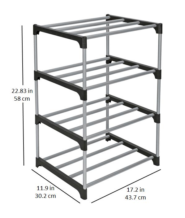 Mainstays 4 Tier Shoe Rack, Black and Silver, 8 Pairs of Shoes, Metal Tubes & Plastic Connectors