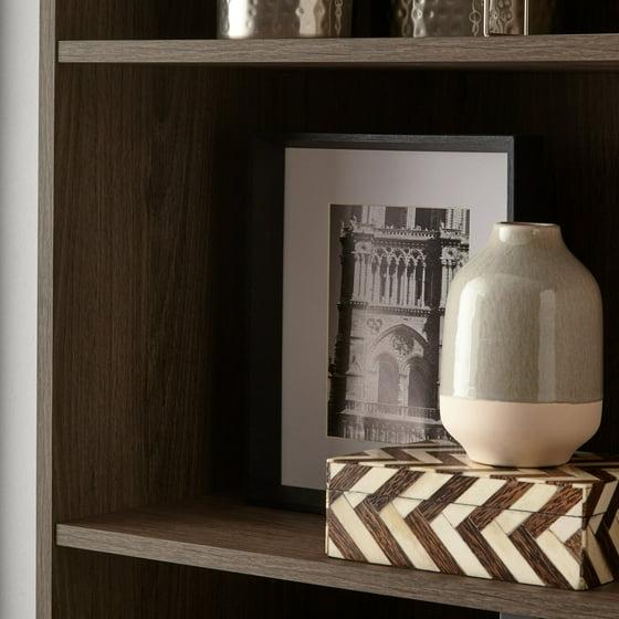 Add Mainstays 5-Shelf Bookcase with Adjustable Shelves to almost any room for a functional and stylish look. This sturdy storage unit has a closed-back design with 2 fixed shelves that hold up to 50 lbs each, and 3 adjustable shelves that support up to 35 lbs each. This attractive bookcase provides a useful storage option for any office, living room, family room, den and more. For safety, this bookcases secures to the wall with an included wall strap kit. The Mainstays 5-Shelf Bookcase stands 71" tall making it perfect for large rooms where smart, efficient storage is needed. The adjustable shelves accommodate everything from paperbacks to large folios to deliver a functional bookcase ideal for a variety of libraries and collections.