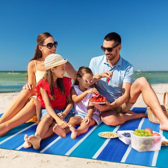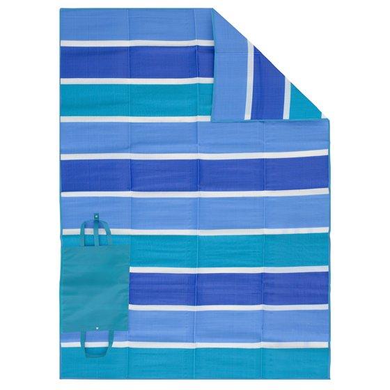 Bring bright color and modern design to your outdoor adventure, and make any space feel like your own personal oasis with the Mainstays 5'x7' Aqua Blue Family Beach Mat. Lightweight and easy to clean, this colorful mat is the perfect piece to jazz up your spot at the beach, campsite, or park. Classic stripes of aqua and blue decorates a busy playroom without fear of fading or staining, or make the outdoors feel a bit more like home with this versatile, durable piece. Easily sweep or rinse off this beautifully woven olefin mat, made with stain resistant and fade resistant properties for long-lasting quality and design. Whether you’re packing up your camper for an outdoor adventure, enjoying a picnic in your backyard or headed to the beach, this piece is sure to brighten things up! For indoor or outdoor use.