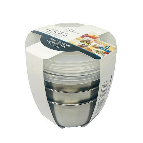 - Mainstays 6-Piece Brushed Stainless Steel 2-Cup Prep Bowl with Lid, 3 Pack