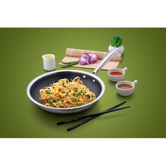 The Mainstays 8-Inch Tri-Ply Stainless Steel Hybrid Non-Stick Fry Pan with Stainless Steel Cool Touch Handle is a compact yet powerful addition to your kitchen. Built with tri-ply construction, it combines an aluminum core between two layers of stainless steel for quick and even heat distribution, helping to eliminate hot spots. The honeycomb-patterned non-stick surface not only makes cooking and cleanup easier but also offers enhanced durability and scratch resistance compared to traditional non-stick coatings. This pan requires less oil for cooking, promoting healthier meals without sacrificing flavor. Its 8-inch size is perfect for everyday dishes like eggs, pancakes, or sautéed vegetables, and it’s ideal for smaller kitchens or as a complement to larger cookware sets. The heat-resistant stainless steel handle stays cool to the touch, providing comfort, safety, and easy maneuverability. Versatile and durable, the Mainstays 8-Inch Tri-Ply Stainless Steel Hybrid Non-Stick Fry Pan with Stainless Steel Cool Touch Handle works on gas, electric, and induction cooktops, making it a dependable tool for effortless cooking.
