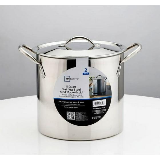 Mainstays 8-Qt Stainless Steel Stock Pot with Metal Lid, Ultra Durable, Stay-Cool Handles, Hand Wash Only