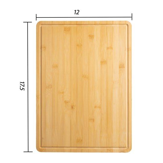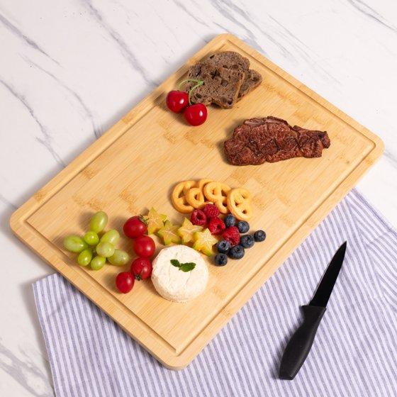 - Durable and Eco-Friendly Bamboo: Made from 100% natural bamboo, this cutting board is both durable and eco-friendly. Bamboo is a strong material that resists cuts and scratches while being gentler on knife blades compared to traditional wood. The natural bamboo color adds a warm, attractive touch to any kitchen.