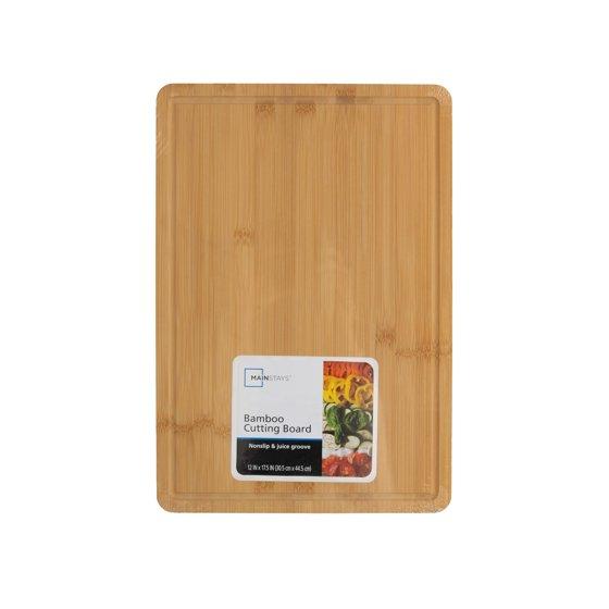 Mainstays 12" x 17.5" Non-slip Bamboo Cutting Board, 100% Natural Bamboo Color, with Juice Groove
