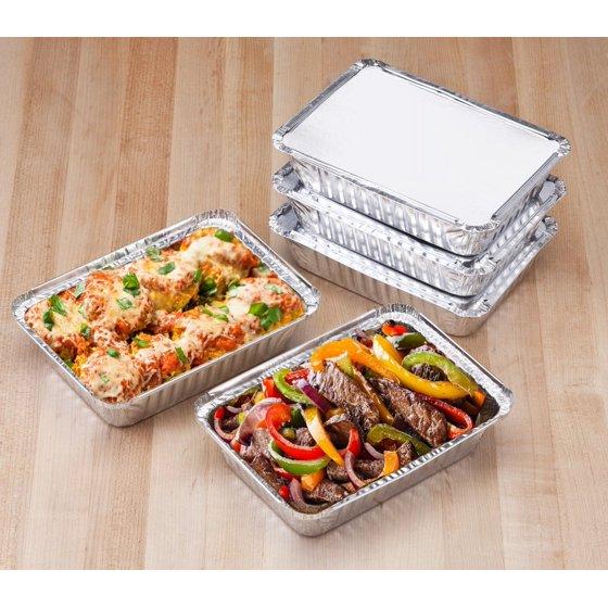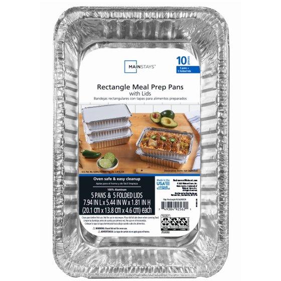 - Mainstays Aluminum Meal Prep pans with folded lids come with 5 pans and 5 folded board lids.